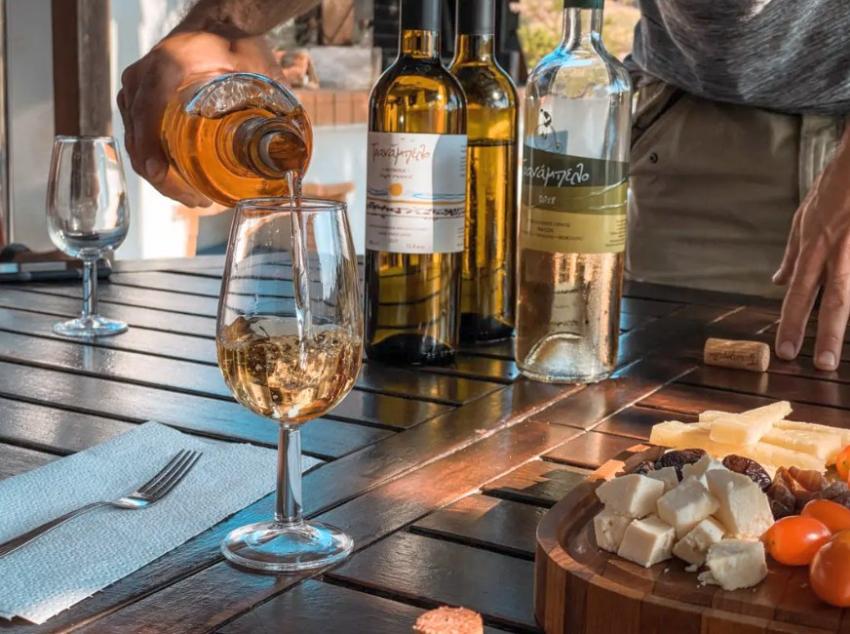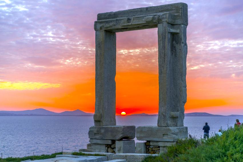Our walk will take us uphill to the top of the medieval castle town of Naxos built once upon a time where stood the glorious ancient Acropolis with marble temples, palaces and fortifications. Sip a raki with honey and cinnamon, nectar of Gods and delight in the enchanting view around. Winding down the castle to the water front every step of your walk travels the imagination from the world of the ancient gods to the Middle Ages and the walled fortress of the ruling Venetian Dukes. Along the way, stops at picture-perfect settings with great views to photograph, highlight the narrative of the islands’ treasured myths. Once back to the water front enjoy at a local wine bar two glasses of wine with delicious cheese pairings and explore all about Dionysos god of wine and drinking habits of past and present. Continue your exploration with a sunset walk to the famous ‘Portara’, the great Gate of the temple of Apollo. Enjoy the sunset while Helios, the sun god paints the sky with the last translucent shades of pink and amber before he sets into the Blue Aegean.